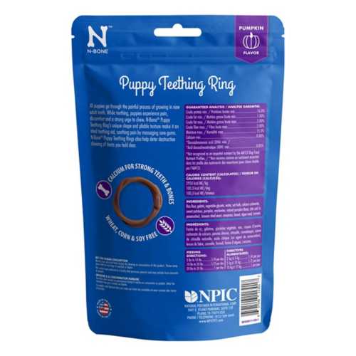 N bone puppy teething ring. I'm conflicted on this review as my golden retriever puppy enjoyed these immensely especially the pumpkin flavor. Puppies find sweet pumpkin flavor to be irresistible, helping them to chew teething ring instead of furniture. Formulated with dha and calcium to support your puppy's unique nutritional needs, our delicious pumpkin flavored rings are pliable and won't damage immature teeth. Formulated with dha and calcium to support your puppy's unique nutritional needs, our delicious pumpkin flavored rings are pliable and won't damage immature teeth. Calcium helps maintain healthy teeth and bones dh?r omega 3 helps promote healthy cognitive development pliable texture is safe for puppy's new teeth and helps soothe teething pain and sore gums. It smells like cinnamon and looks like a pressed rawhide bracelet at first glance. This delectable dental treat is made to be completely edible to provide a safe chewing experience for your growing puppy. Results are based on 3,723 reviews scanned. Formulated with dha and calcium to support your puppy's unique nutritional needs, our delicious chicken flavored rings are pliable and won't damage immature teeth. I tried the pumpkin flavor. My 3 month old puppy loves the pumpkin and chicken flavors. Formulated with dha and calcium to support your puppyæs unique nutritional needs, our delicious chicken flavored rings are pliable and wonæt damage immature teeth.